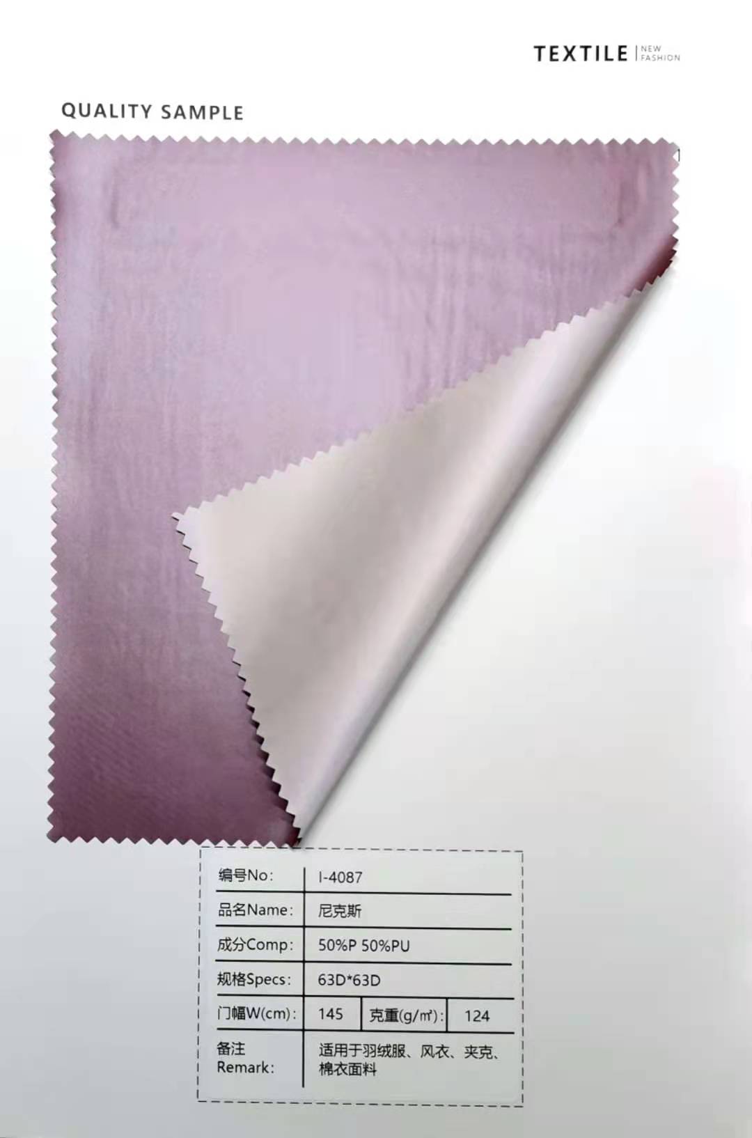 尼克斯羽絨服風(fēng)衣夾克棉衣63D*63D 124克面料