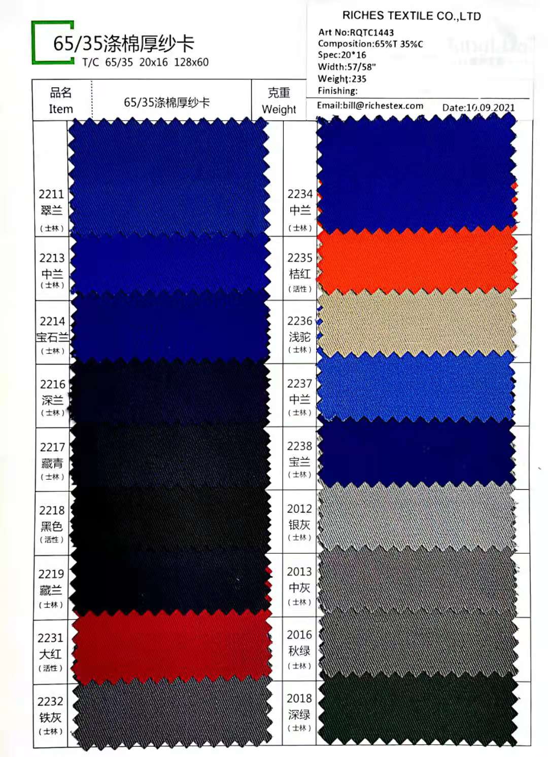 滌棉厚紗卡65%T*35%C 128*60 235克面料