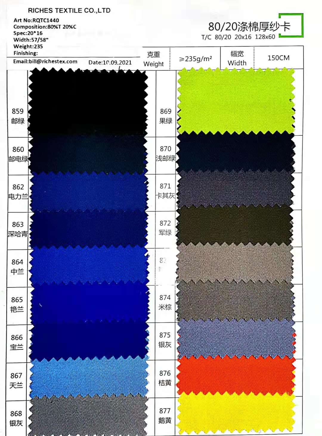 滌棉厚紗卡80%T*20%C 128*60 235克面料
