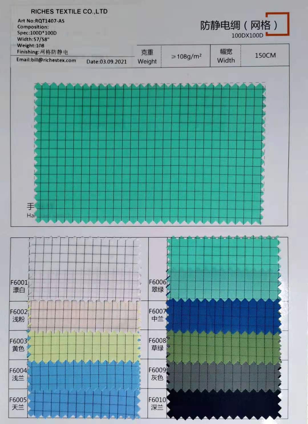 防靜電綢面料(網(wǎng)格)100D*100D 108克面料