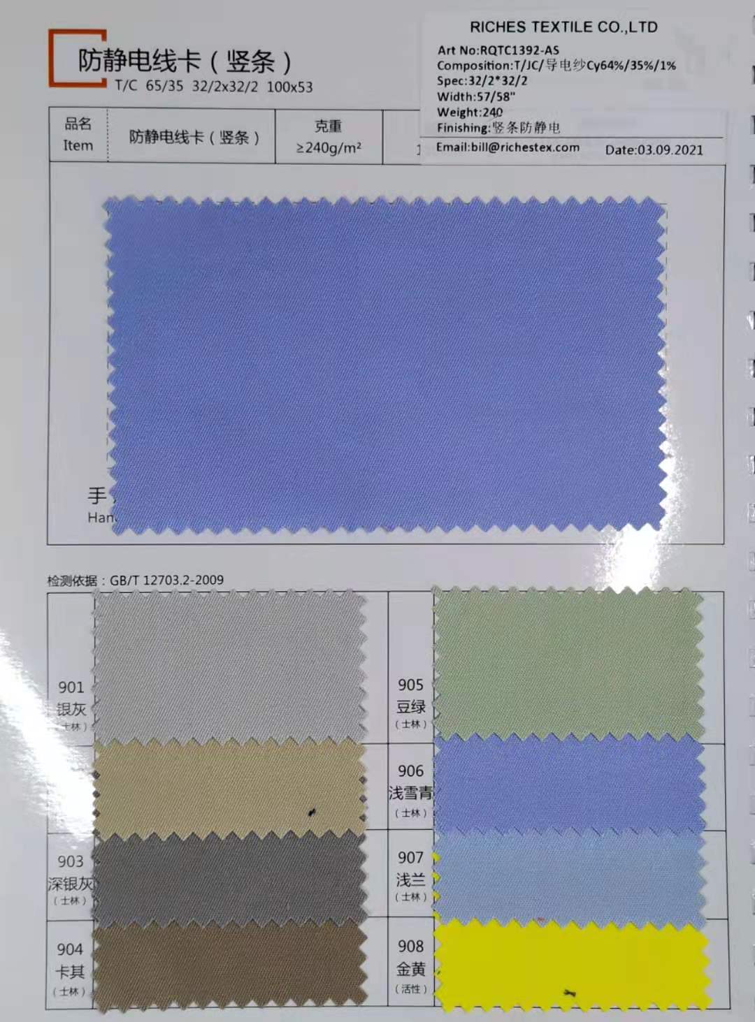 ?防靜電紗卡面料(豎條)64%T*35%JC*1導電紗 240克面料